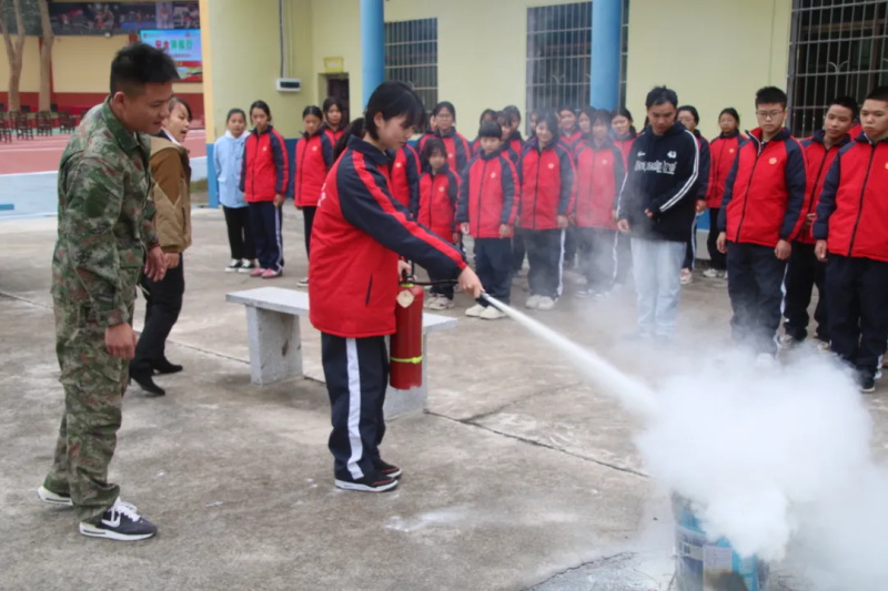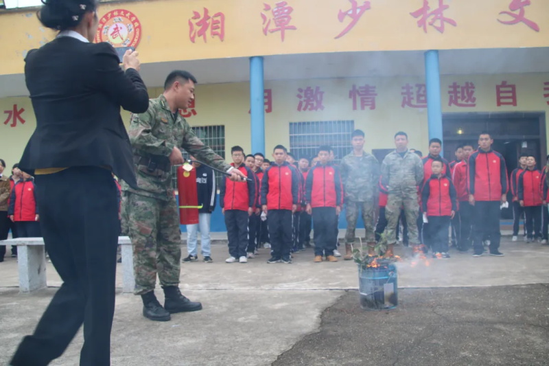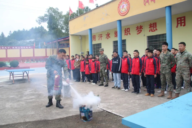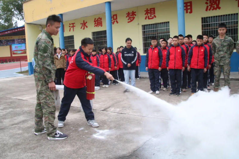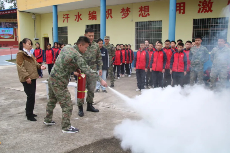 随后,军事总教官、周教官亲自示范灭火器操作流程,从提、拔、握、压的规范动作到安全注意事项,讲解细致入微,并邀请两名同学现场实操演练,让大家切实掌握灭火技能。