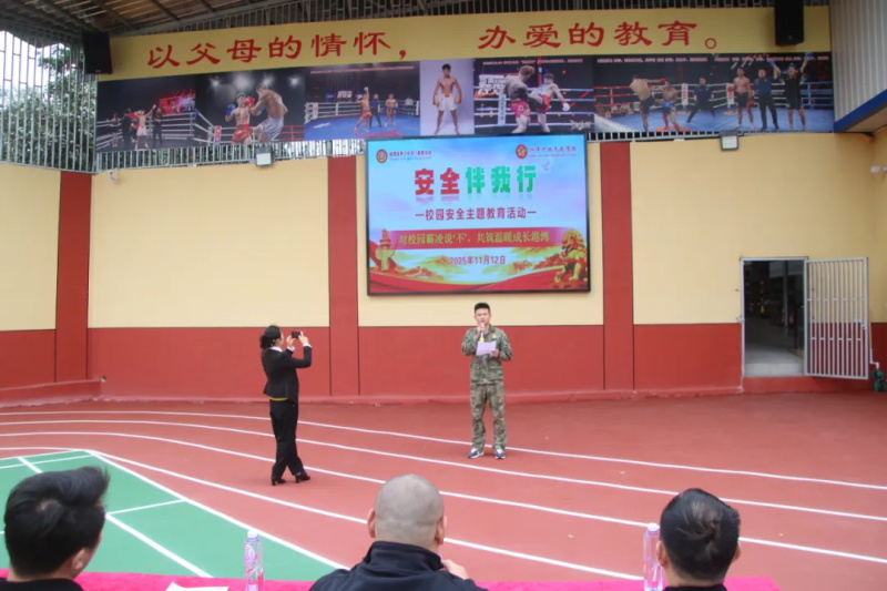 易校长强调,随着社会发展,校园安全已覆盖网络空间、交通出行、同伴相处、用火用电等多元领域,潜藏的风险不容忽视。为此,学校精心筹备本次活动,涵盖利剑护蕾、防校园霸凌、防溺水等十大核心领域,只为筑牢师生安全“防护墙”。他逐一介绍各环节主讲人及核心内容,叮嘱同学们以谦逊之心倾听案例剖析,以敬畏之心学习应对技巧,将安全知识转化为自我保护的“硬本领”。
