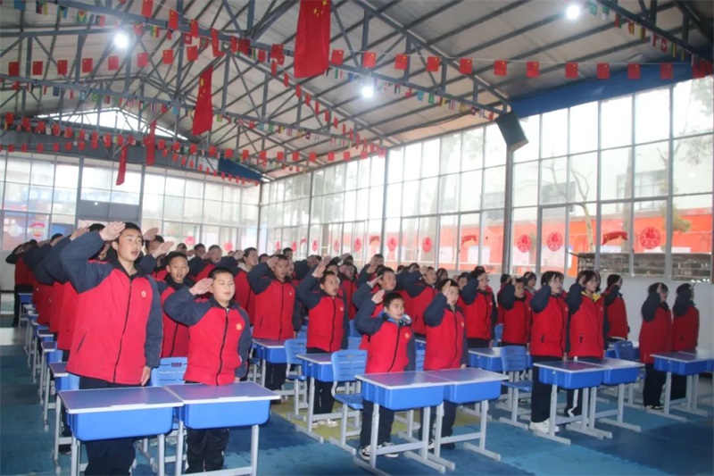 全体同学举起右手,庄严宣誓,表达了在新学期中努力学习、严格自律的决心。