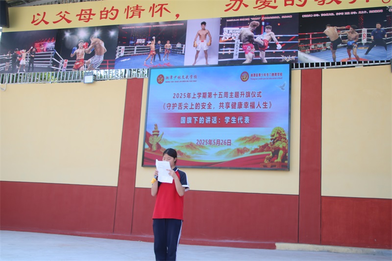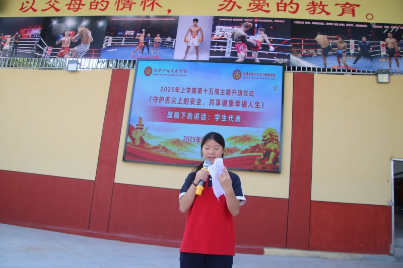 上学期第十五周以“守护舌尖安全,贡享健康人生”为主题的升旗仪式