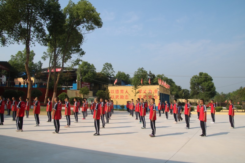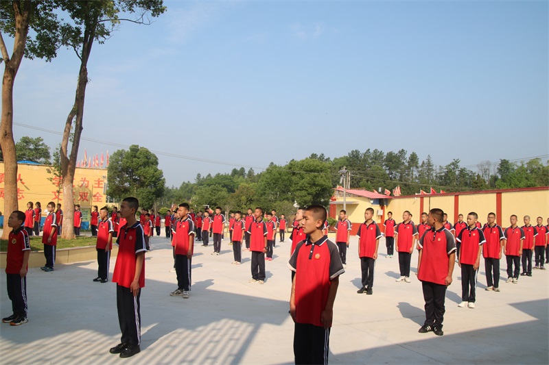 半封闭式军事化教育,改变学生不良行为习惯,使学生具有自我控制能力!