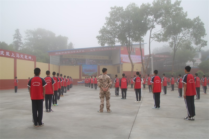 半封闭式军事化教育,改变学生不良行为习惯,使学生具有自我控制能力!